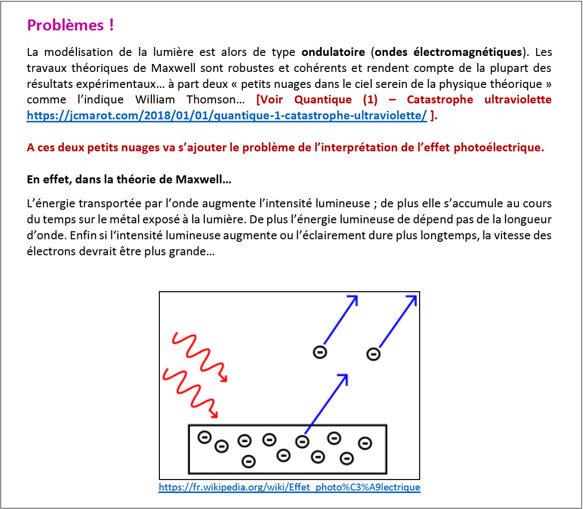 Voir également : https://jcmarot.com/2018/01/02/animations-pour-quantique-2/ (2-effet photoélectrique)