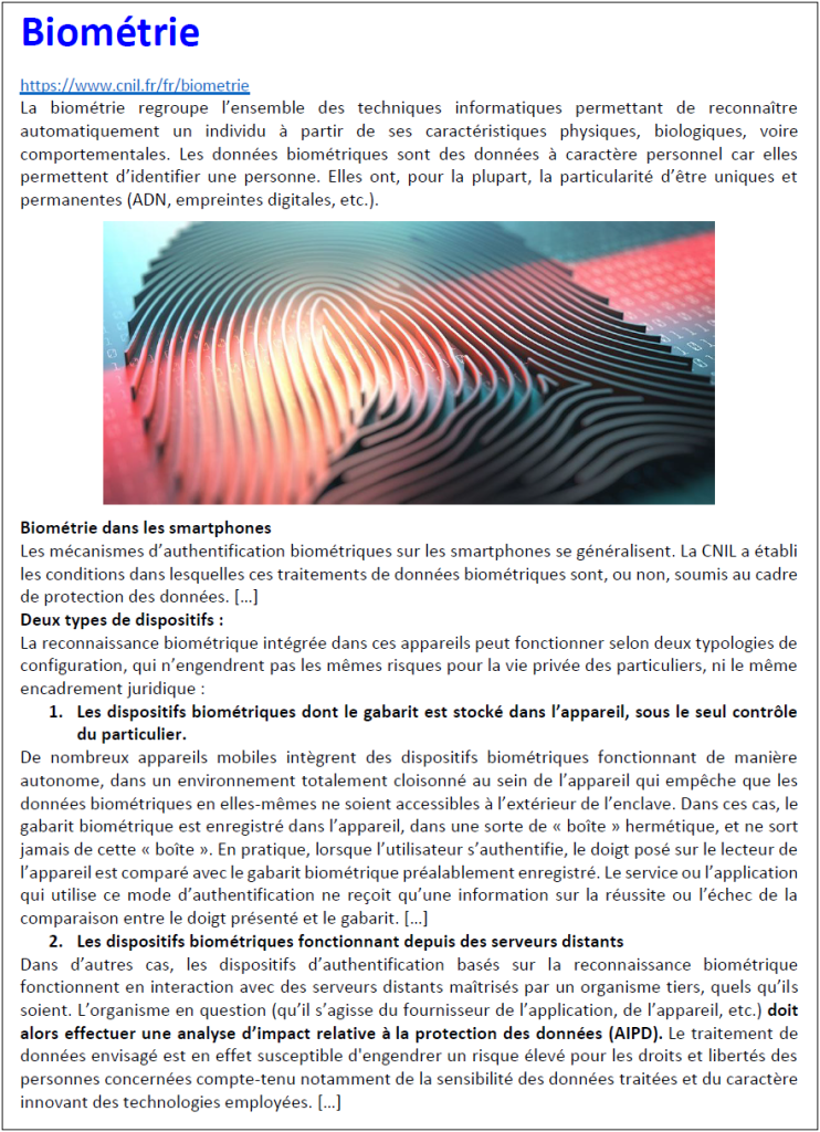 Tous les documents indiqués sont téléchargeables à l’adresse DOCS (dossier biometrie).
