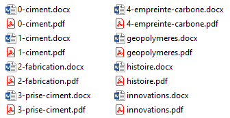 Tous les documents indiqués sont téléchargeables à l’adresse DOCS (dossier materiaux (1) ciment).