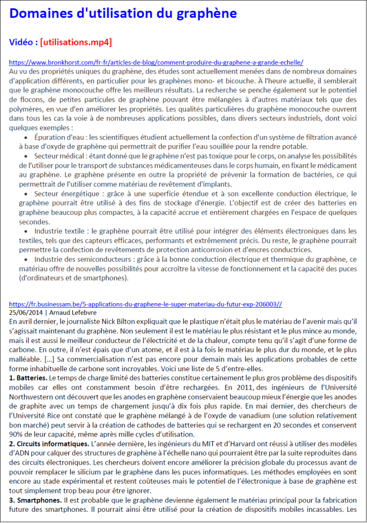 Il s’agit ici d’un travail d’exploitation de documents relatifs au graphène et ses applications.