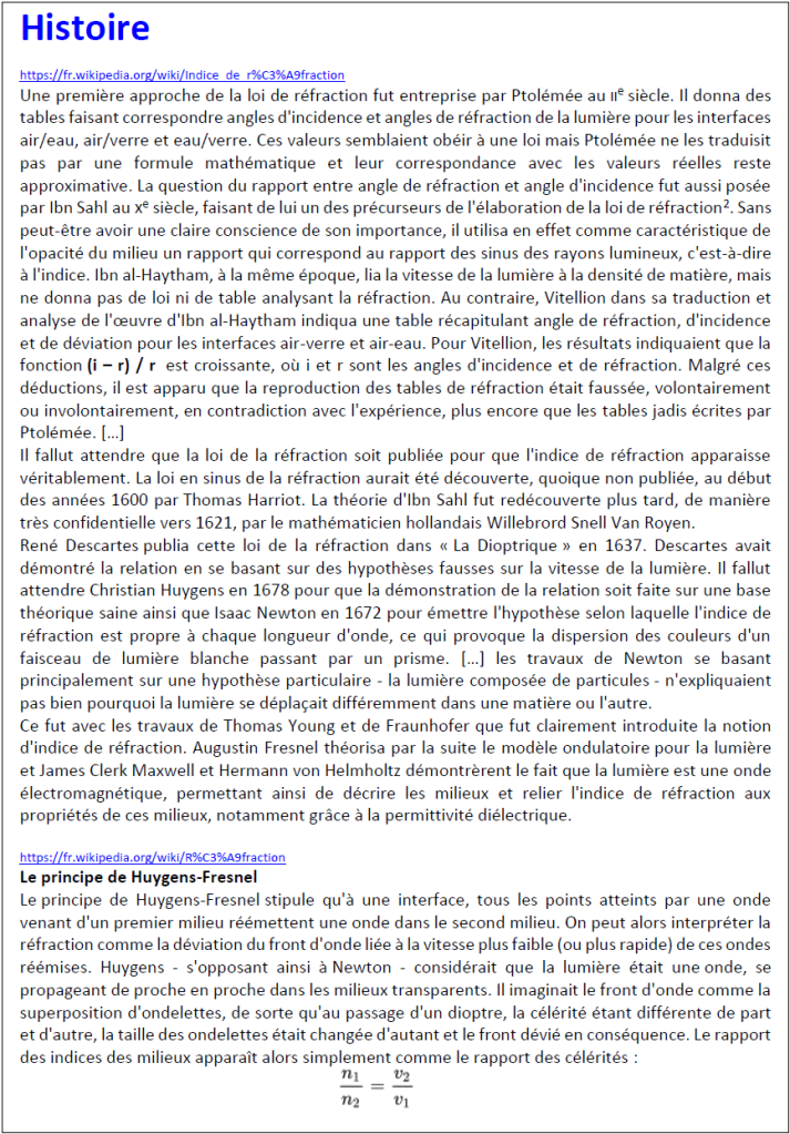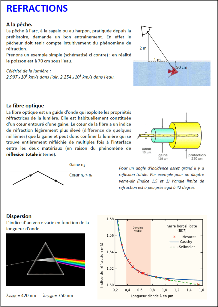 Tous les documents indiqués sont téléchargeables à l’adresse DOCS (dossier refraction).