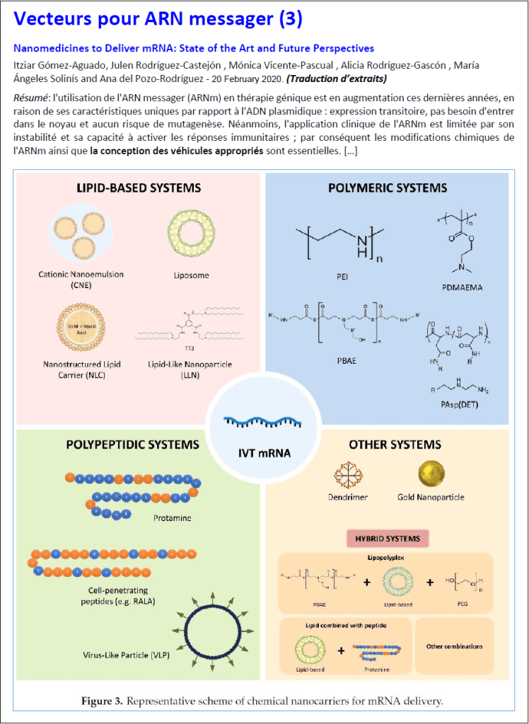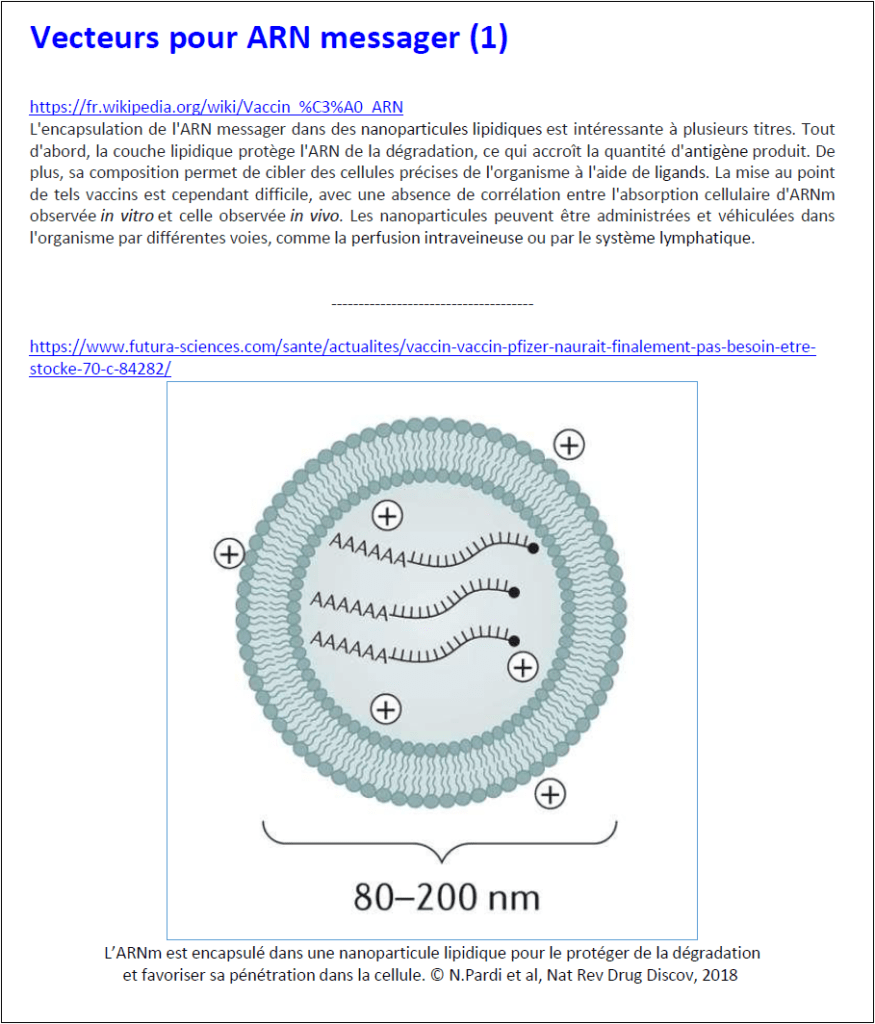 On aborde, sur la pointe des pieds et sans accéder aux interprétations biologiques, l’utilisation de « nanovecteurs » dans les domaines médicaux. C’est à l’ordre du jour, en particulier avec les vaccins à l’ARN messager développés contre la Covid-19.