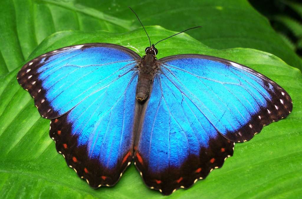 https://www.futura-sciences.com/planete/definitions/zoologie-iridescence-10240/ L’iridescence donne aux ailes du papillon morpho qui vit dans les forêts tropicales, une couleur bleu métallique. © Garoche, Pixabey, CC0 Creative Commons.