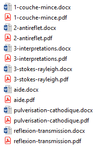 Documents de travail : [1-couche-mince.pdf] ; [2-antireflet.pdf] ; [3-stokes-rayleigh.pdf] et [3-interpretations.pdf]