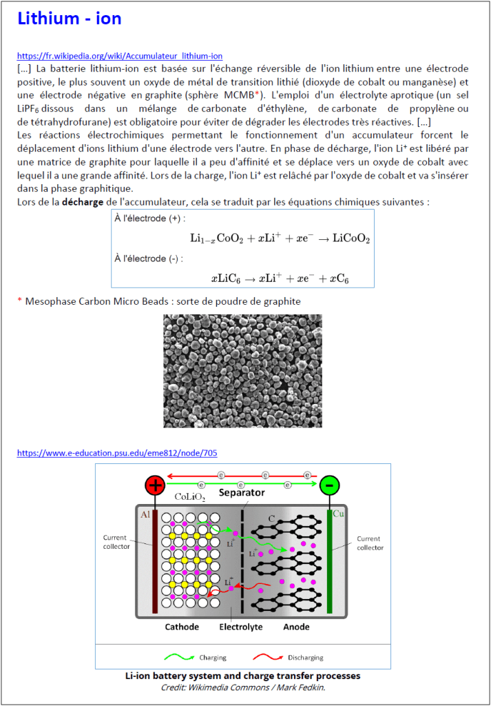 Tous les documents indiqués sont téléchargeables à l’adresse DOCS (dossier lithium-ion).