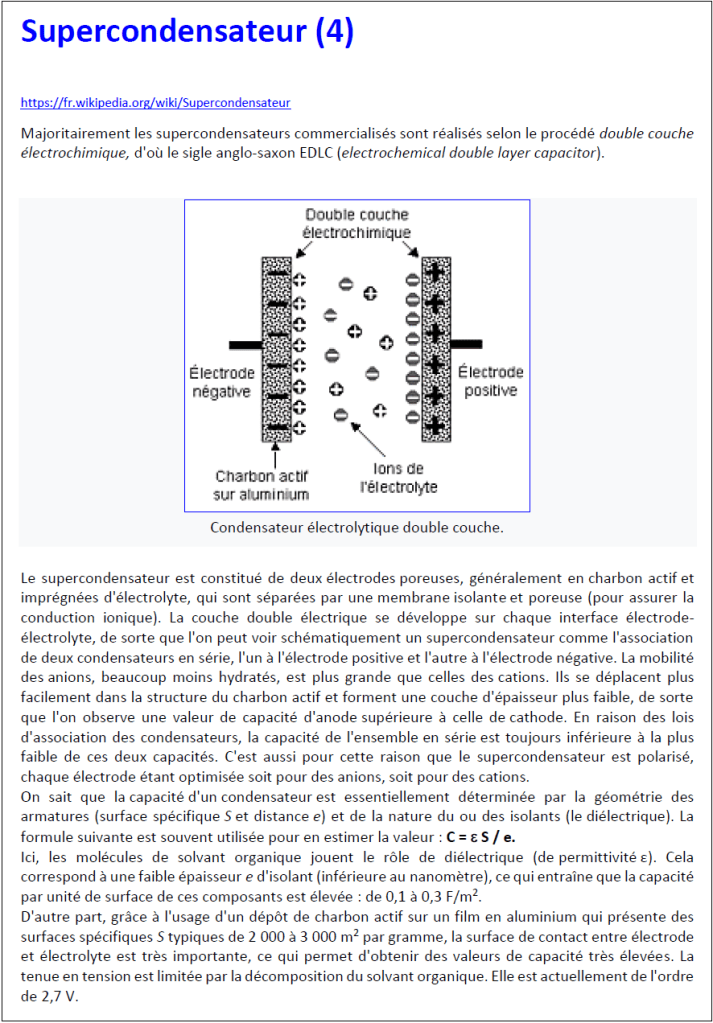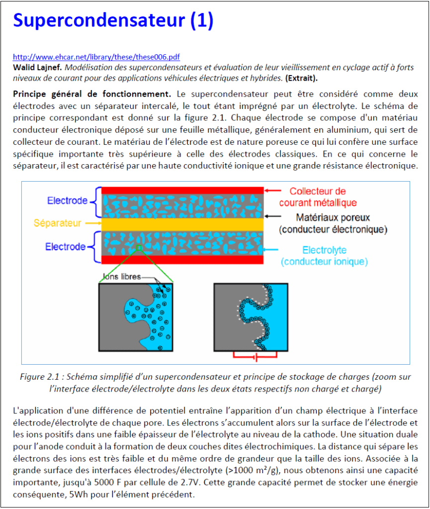 Tous les documents indiqués sont téléchargeables à l’adresse DOCS (dossier supercondensateur).