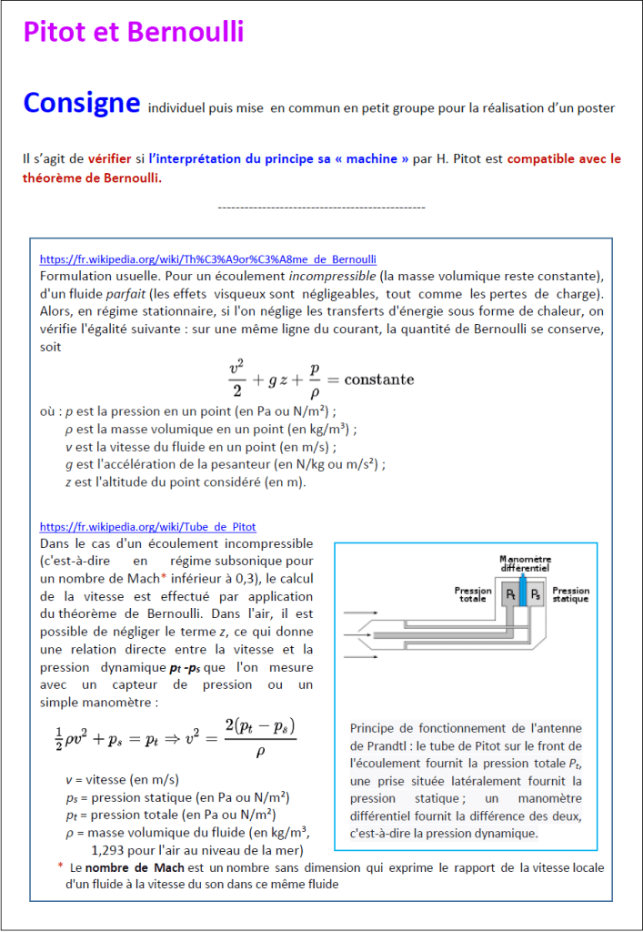 Tous les documents indiqués sont téléchargeables à l’adresse DOCS (dossier pitot – bernoulli).