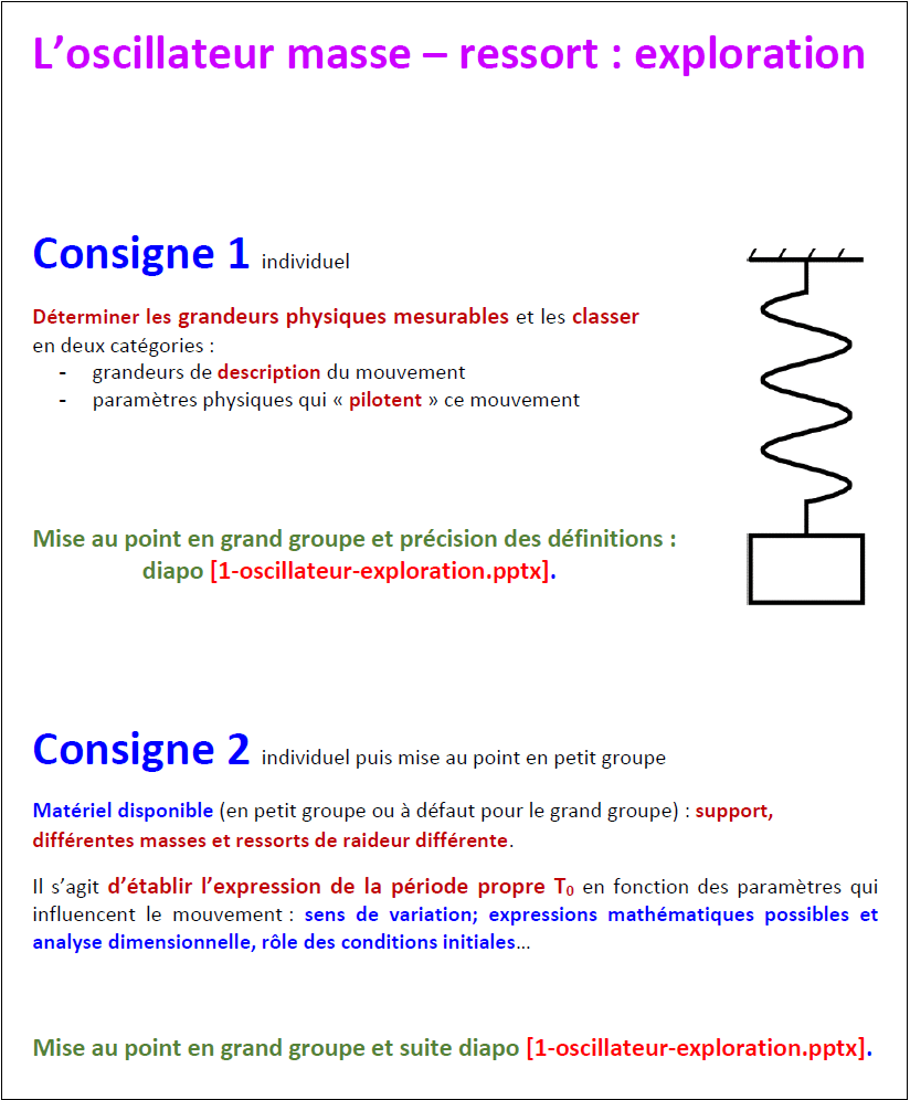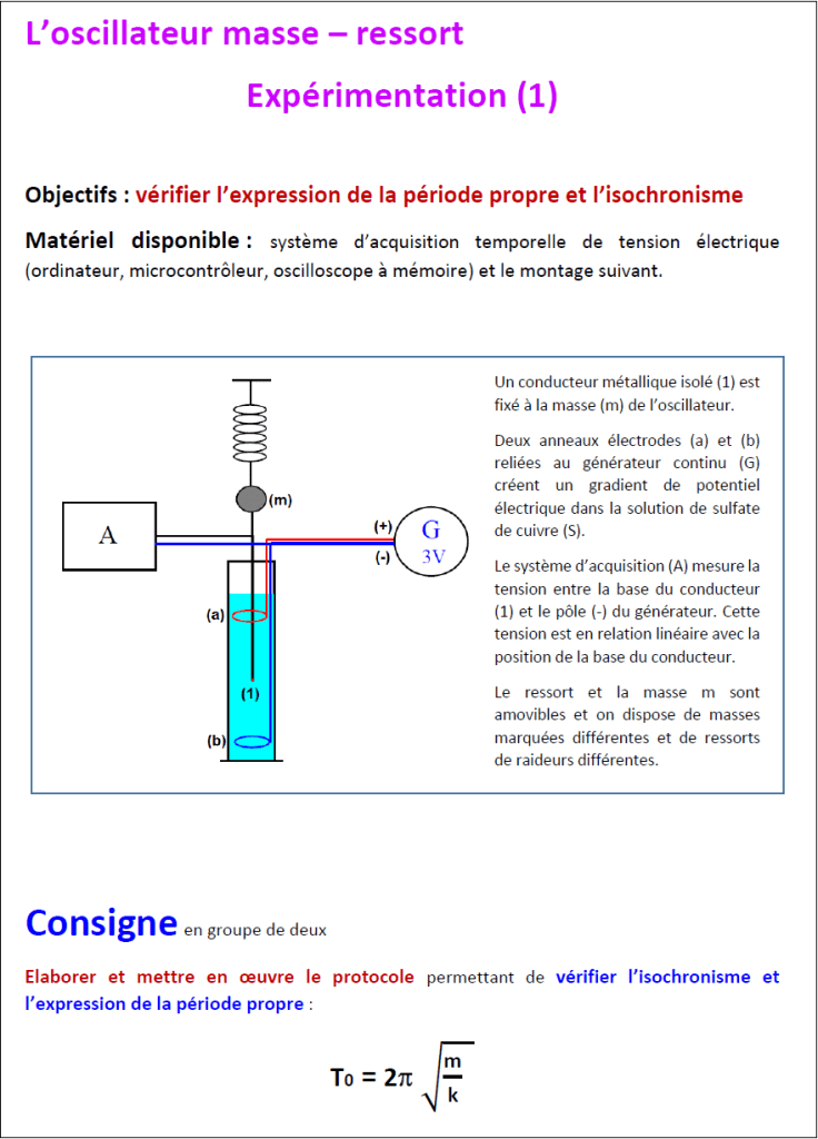 Tous les documents indiqués sont téléchargeables à l’adresse DOCS (dossier oscillateur elastique).