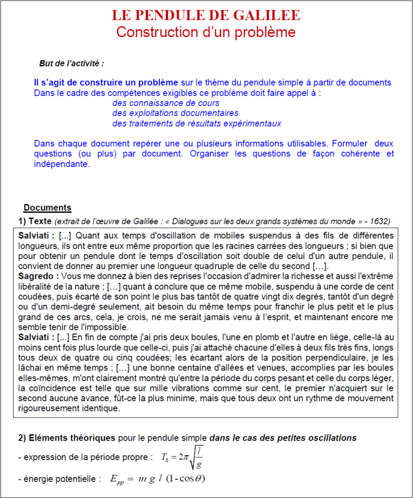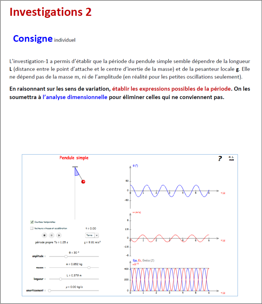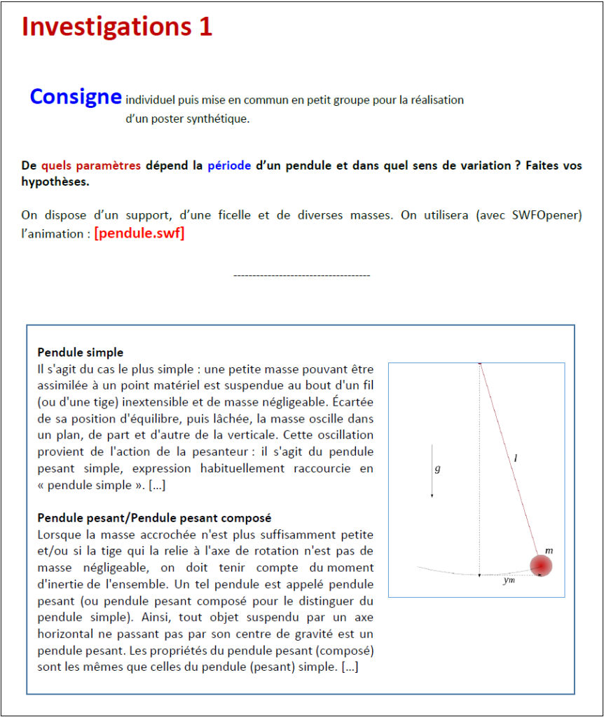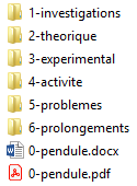 On trouvera ici une diversité de travaux sur le thème du pendule, en 4 parties : investigations, théorie, expérimentation, activité. Et en compléments : problèmes et prolongements.