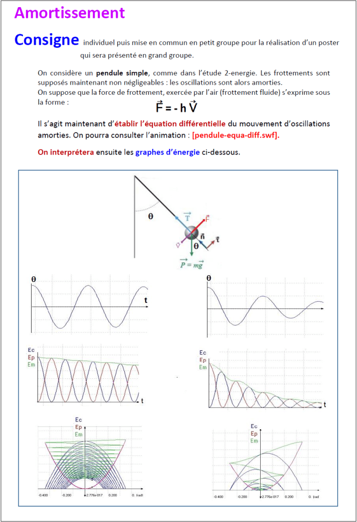 On pourra utiliser également : Equa-diff (2) Ordre 2, Oscillateur élastique, L’horloge et Mouvement (8) – Pendule