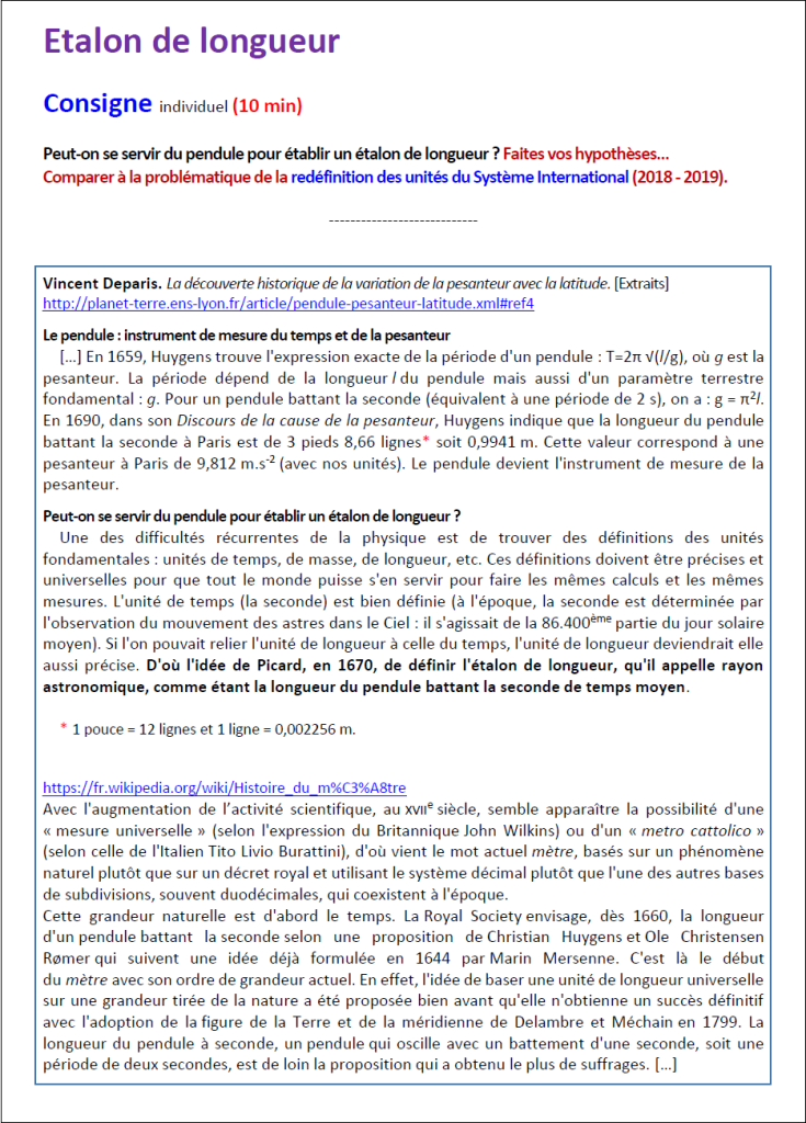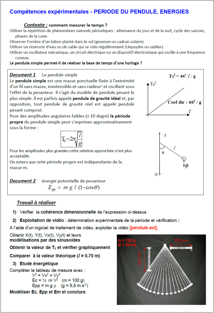 Tous les documents indiqués sont téléchargeables à l’adresse DOCS (dossier pendule)