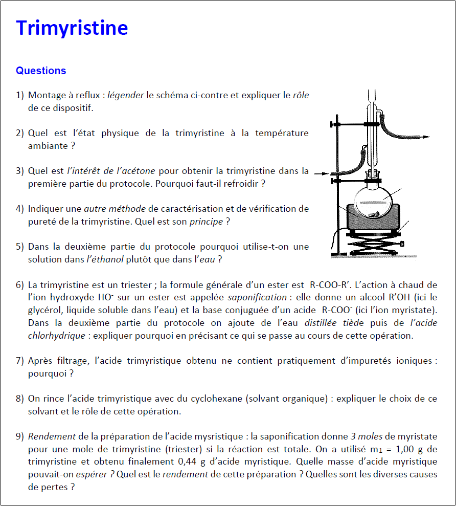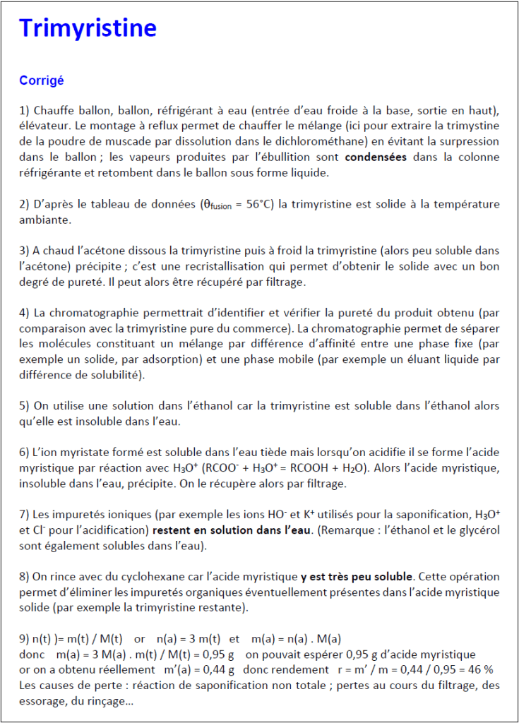Tous les documents indiqués sont téléchargeables à l’adresse DOCS (trimyristine)