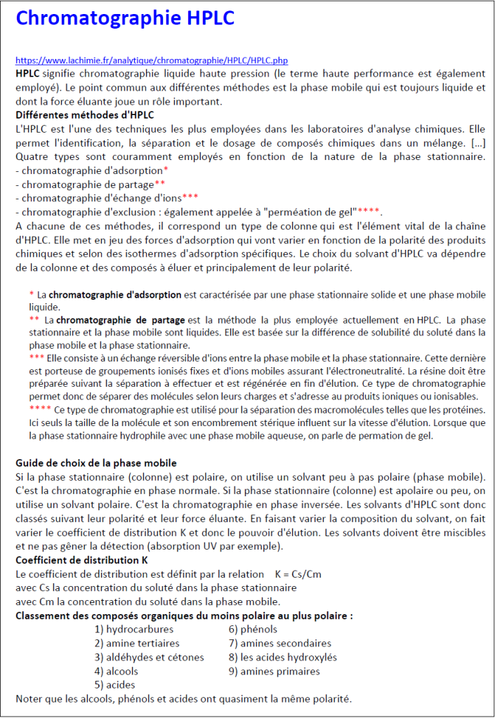 Tous les documents indiqués sont téléchargeables à l’adresse DOCS (chromato (3) HPLC)