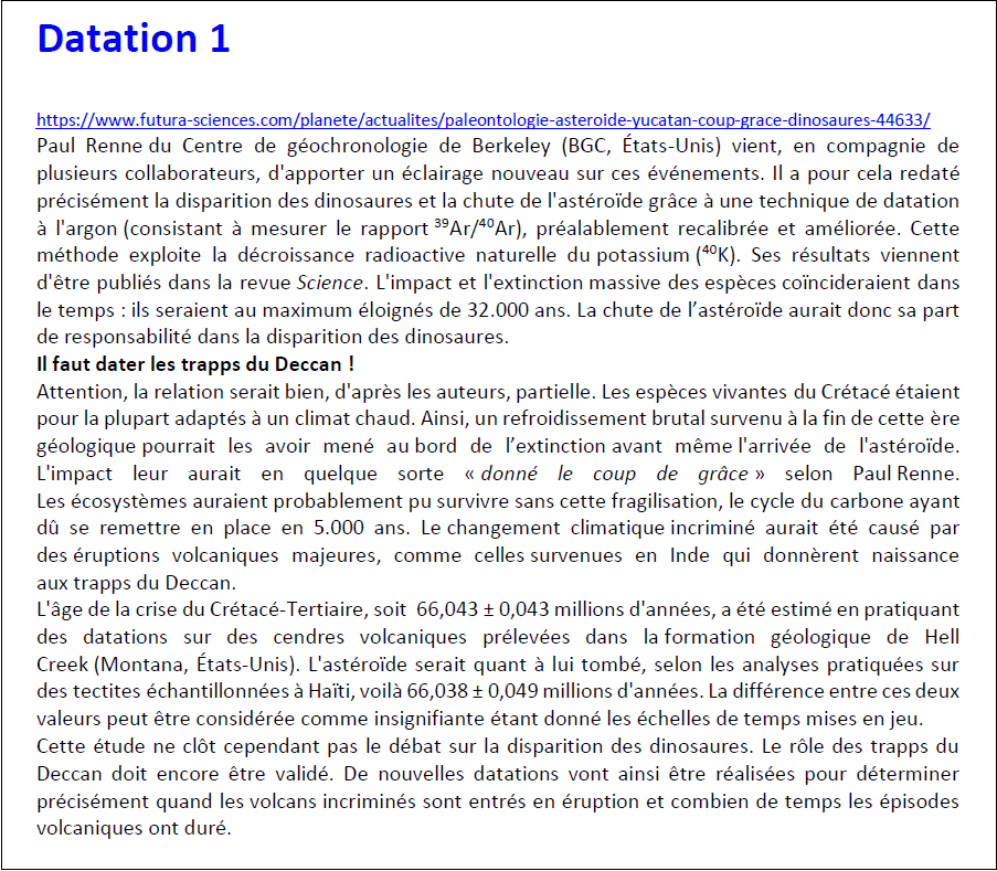 Et un diaporama concernant la datation (potassium-argon et argon-argon) :