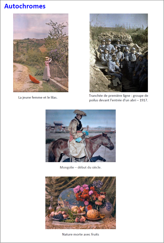 On pourra voir également l’épisode de la série « Faire l’histoire » de Patrick Boucheron : « L’autochrome, la vie en couleur »