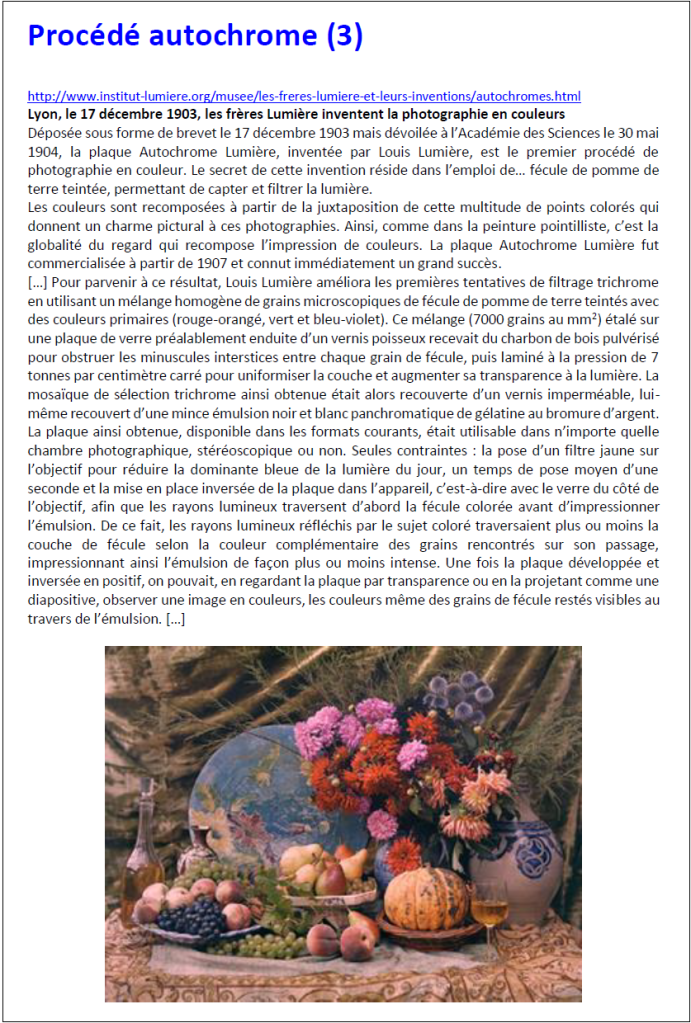 Tous les documents indiqués sont téléchargeables à l’adresse DOCS (autochrome)