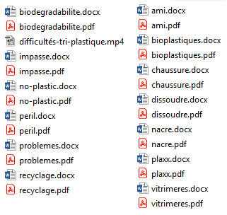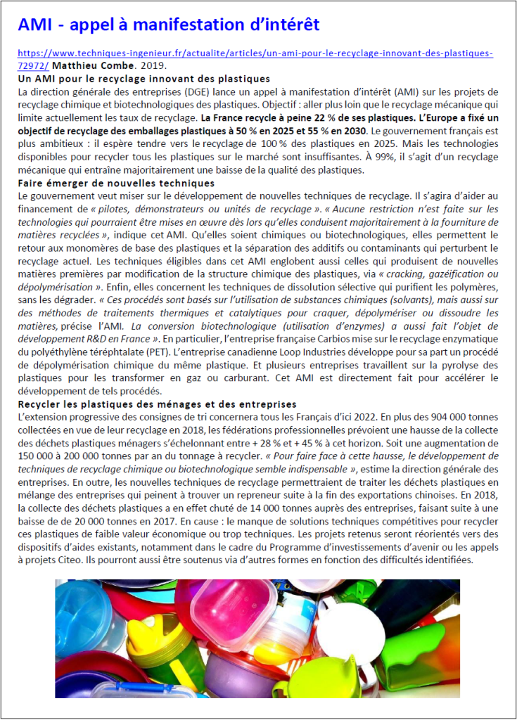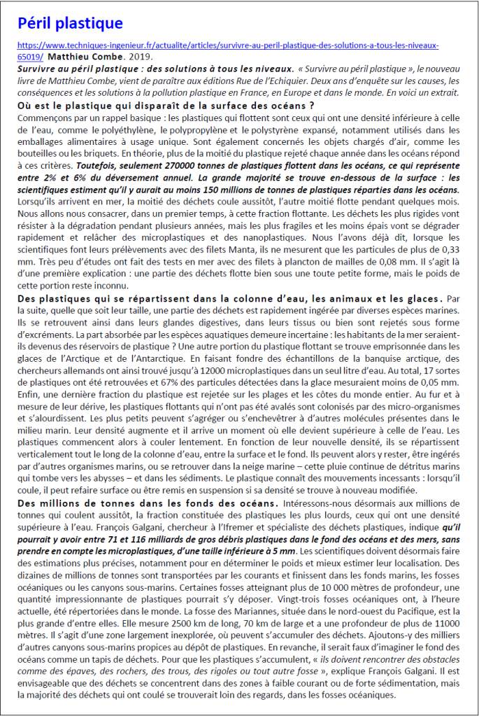 Tous les documents indiqués sont téléchargeables à l’adresse DOCS (plastiques)