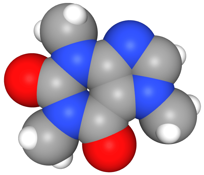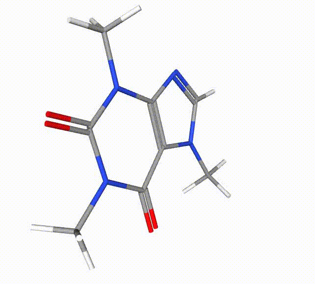 Adapté de https://pubchem.ncbi.nlm.nih.gov/compound/caffeine#section=3D-Conformer