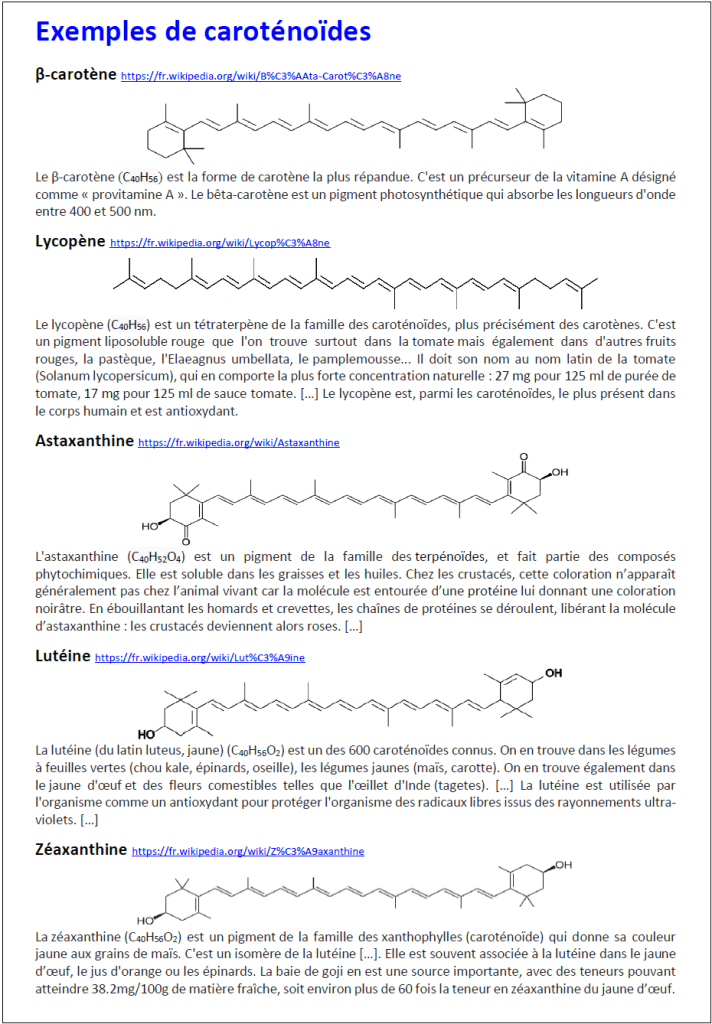 Tous les documents indiqués sont téléchargeables à l’adresse DOCS (carotene)