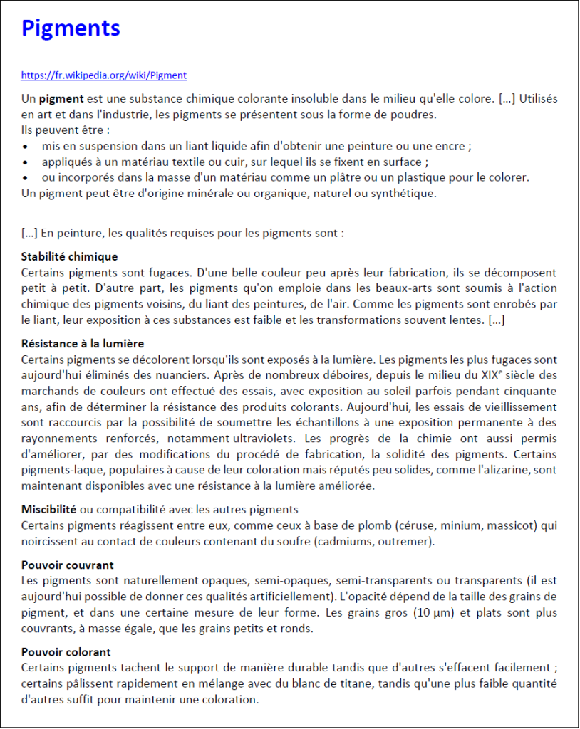 Dossier pigments :