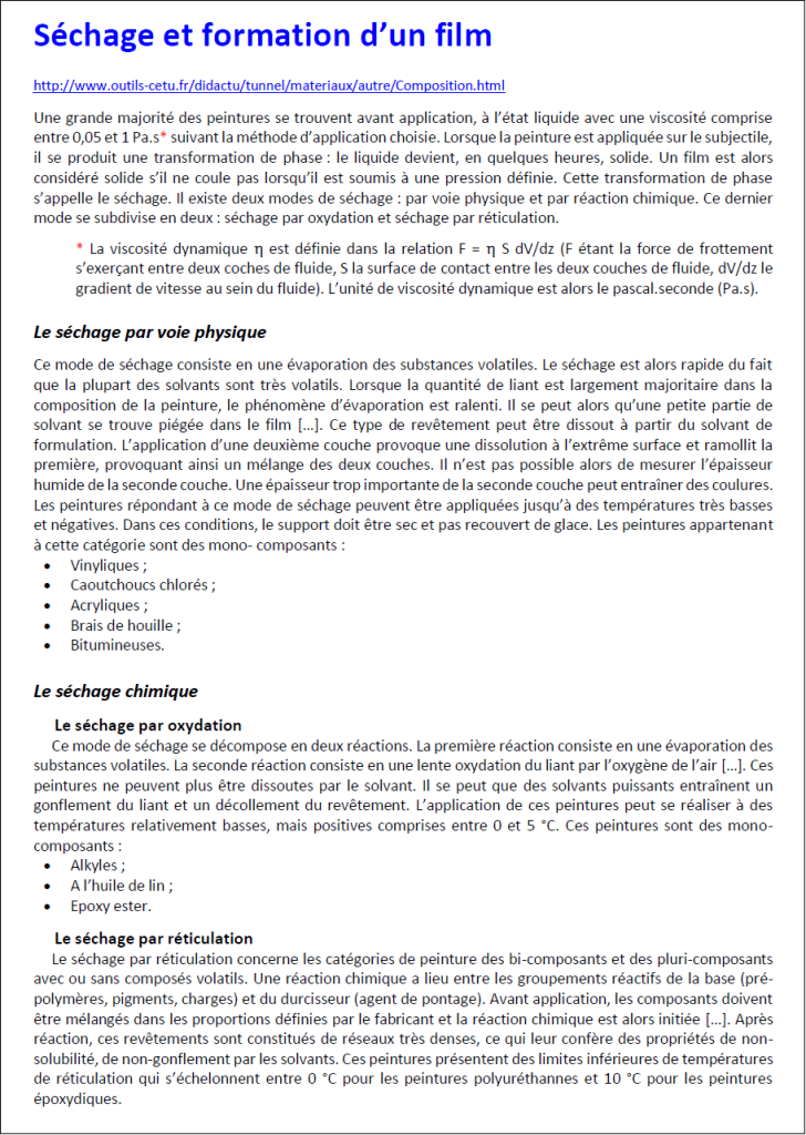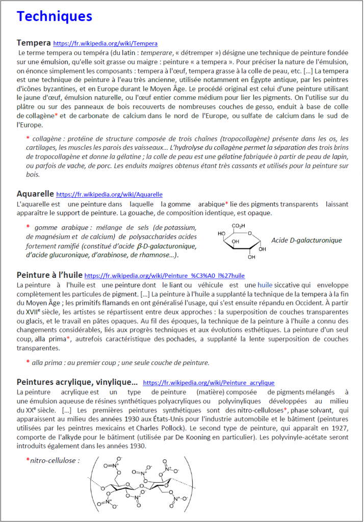 Tous les documents indiqués sont téléchargeables à l’adresse DOCS (peinture)