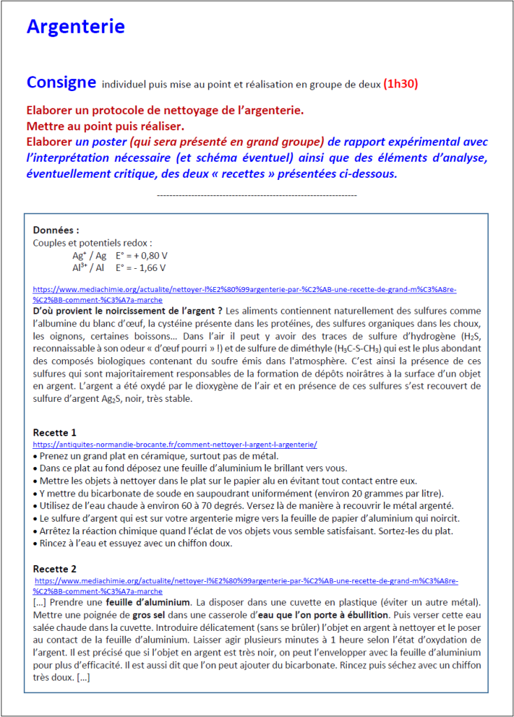 Tous les documents indiqués sont téléchargeables à l’adresse DOCS (argenterie)