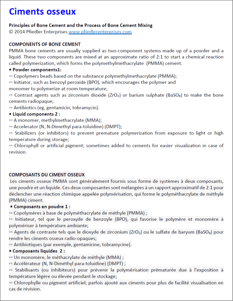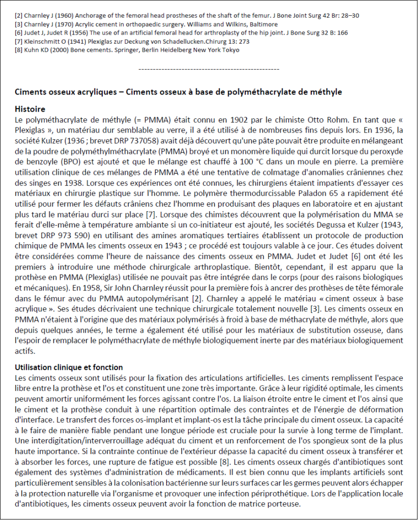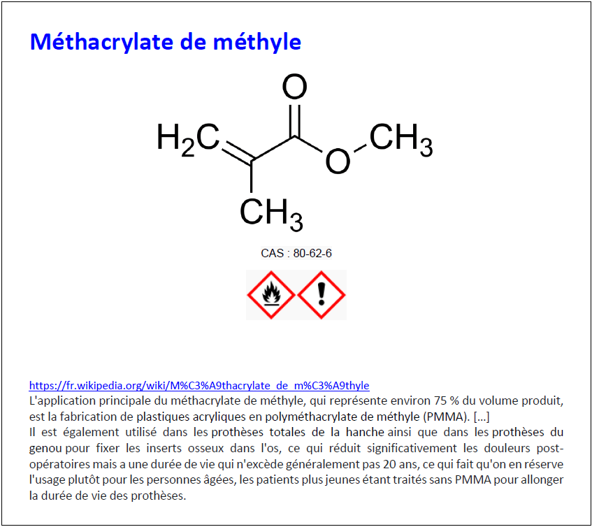 Ciment de prothèse : polyméthacrylate de méthyle – PMMA
