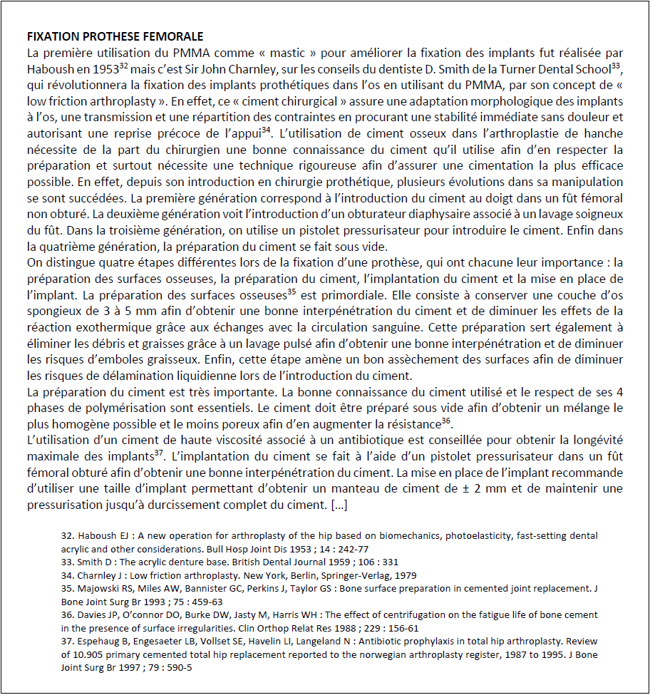 J. Chappuis et S. El Banna. Le rôle du ciment en orthopédie. (Extrait)