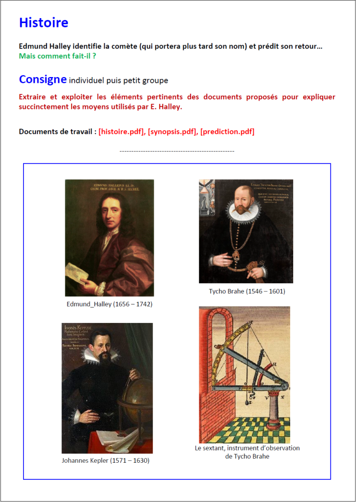 Tous les documents nécessaires sont téléchargeables à l’adresse DOCS (dossier comete).