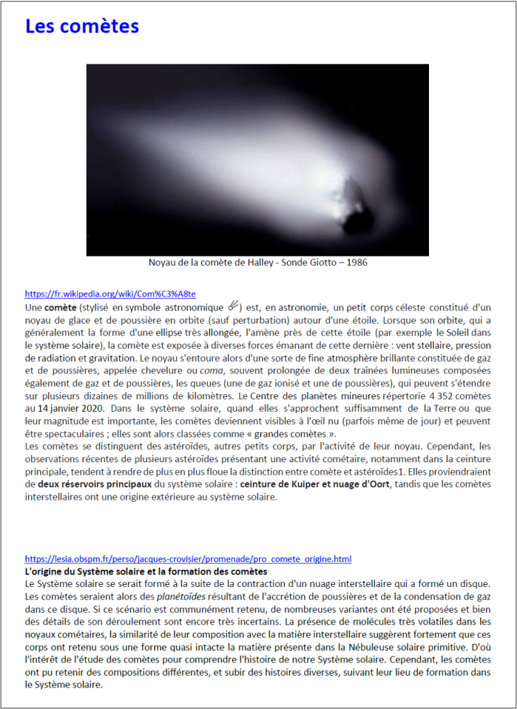 1 – Comète – Nature et origine