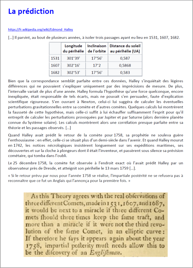2 – Histoire – La prédiction de Halley ; comment fait-il ?