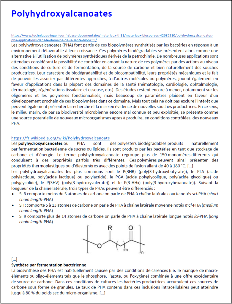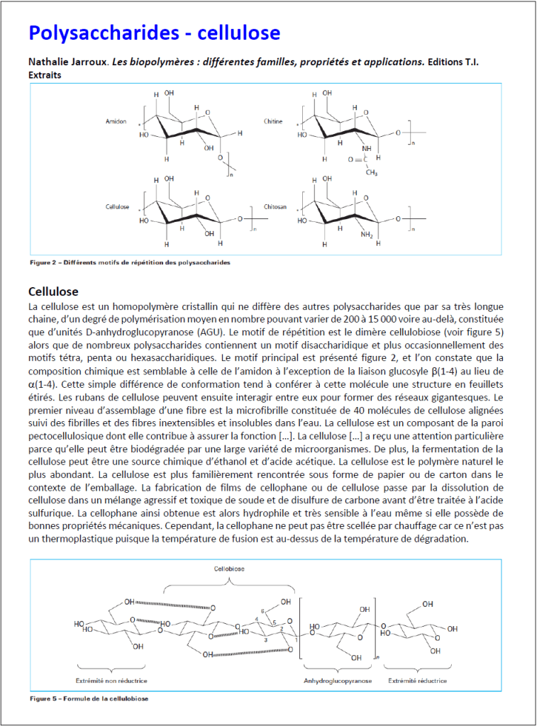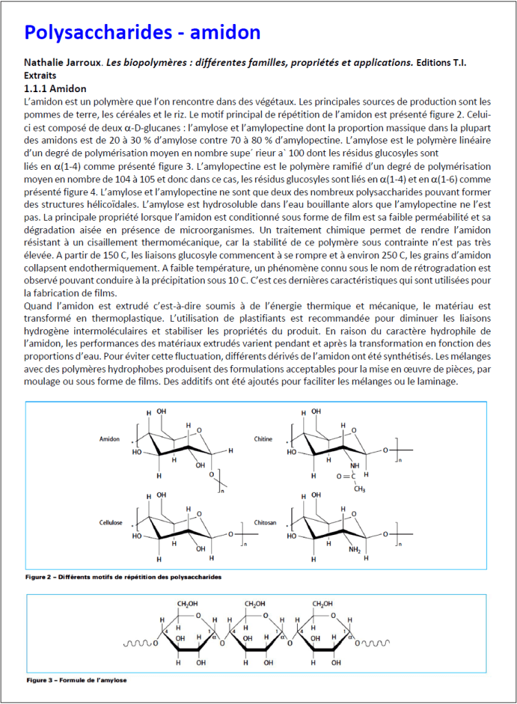 Tous les documents indiqués sont téléchargeables à l’adresse DOCS (dossier biopolymeres)