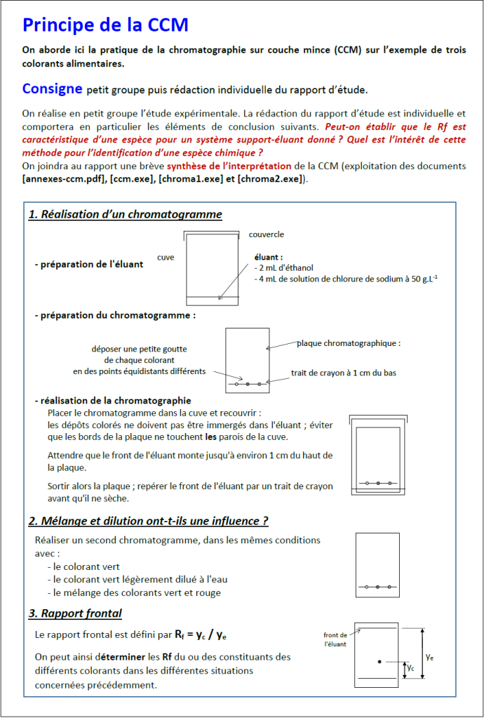 - Chromatographie sur couche mince (CCM ou TLC en anglais).