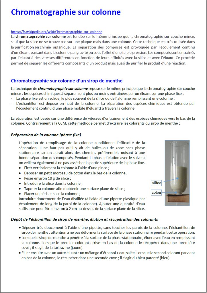 Tous les documents indiqués sont téléchargeables à l’adresse DOCS (chromato (1) CM)