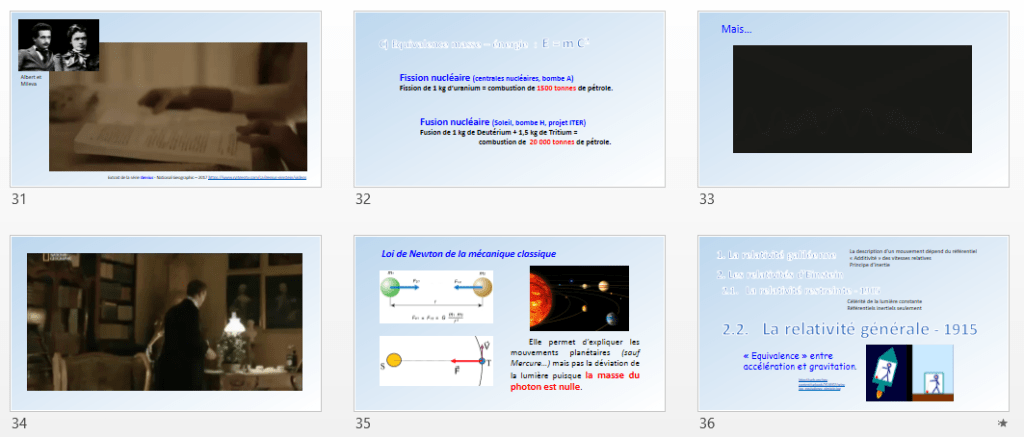 Des vidéos sont extraites de la série Genius (saison 1) de Noah Pink et Ken Biller, adaptée du roman de de Walter Isaacson Einstein, la vie d’un génie (2007) et produite par Brian Grazer et Ron Howard. Elle a été diffusée par National Geographic TV : https://www.natgeotv.com/ca/genius-einstein.