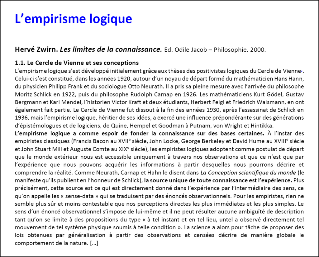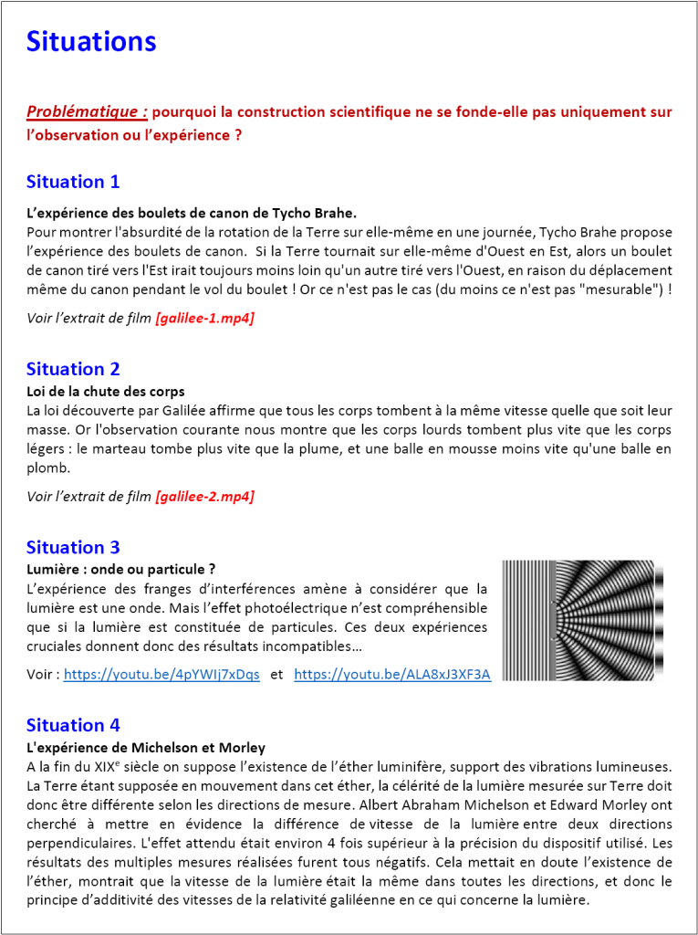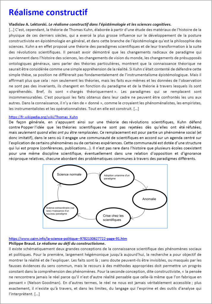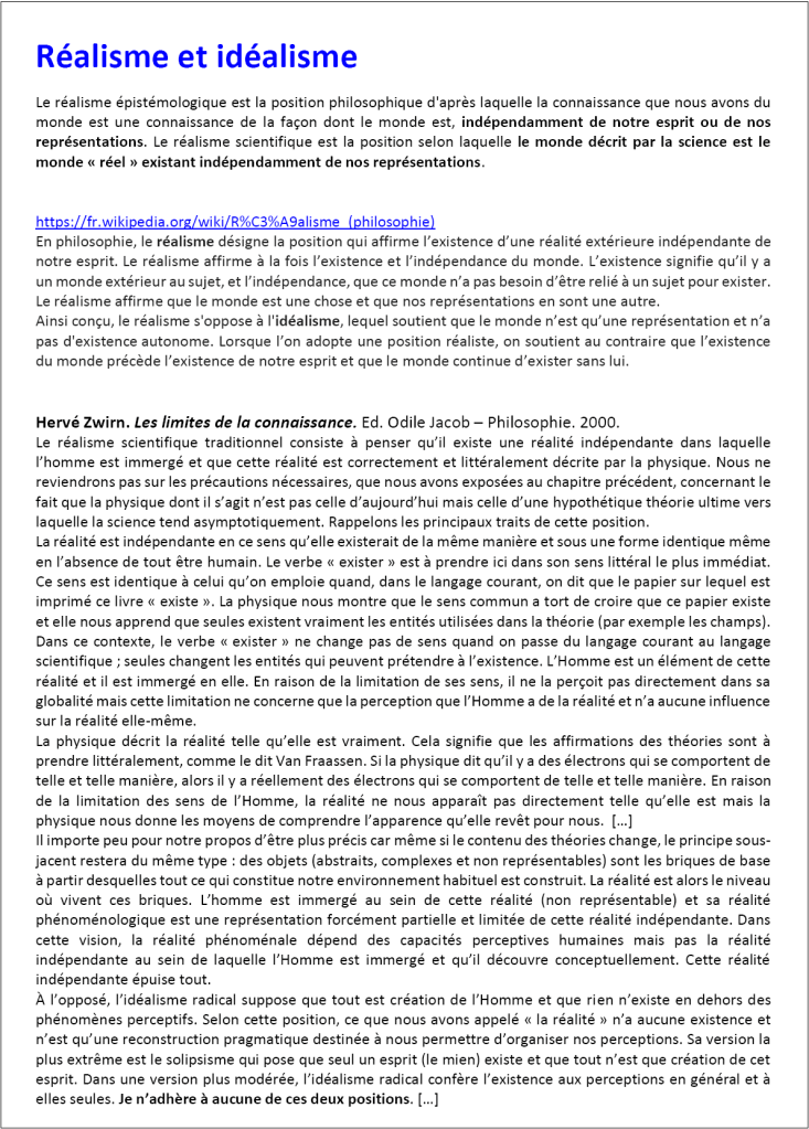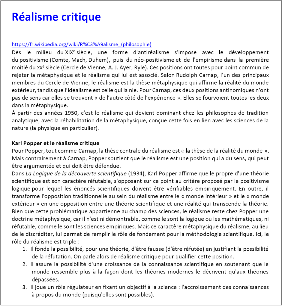Tous les documents indiqués sont téléchargeables à l’adresse DOCS (dossier epistemologie (1) experience)