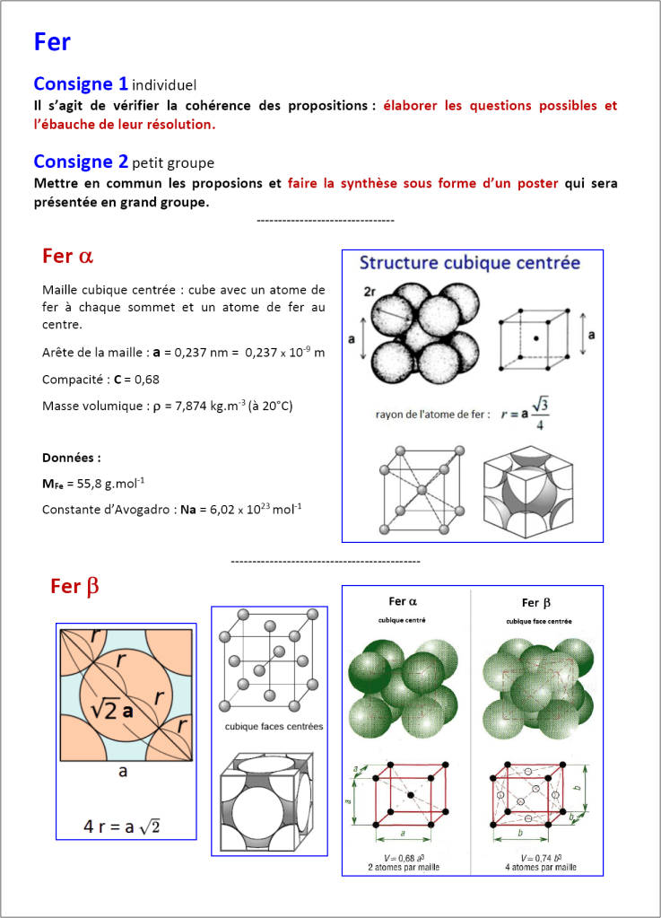 Deux exemples classiques, le chlorure de sodium et le fer, pour aborder la modélisation des cristaux.