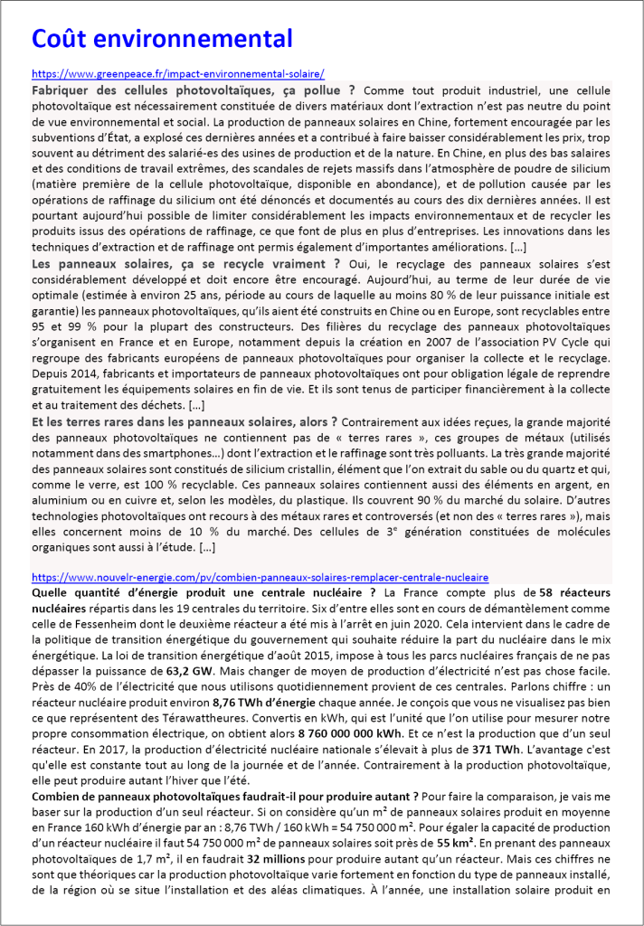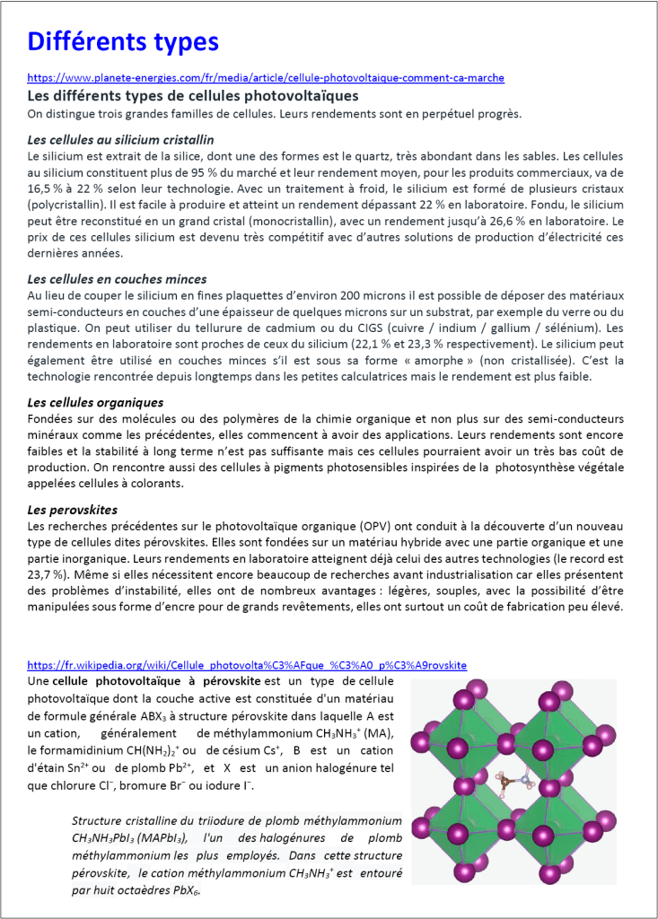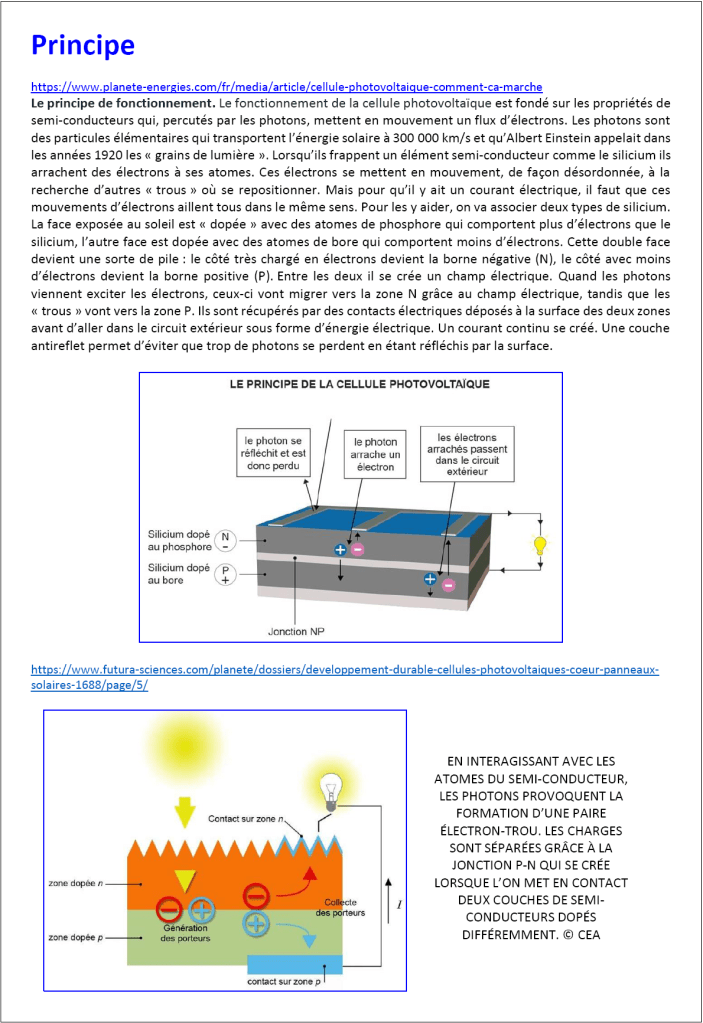 Tous les documents indiqués sont téléchargeables à l’adresse DOCS (dossier silicium (4) – photovoltaique)