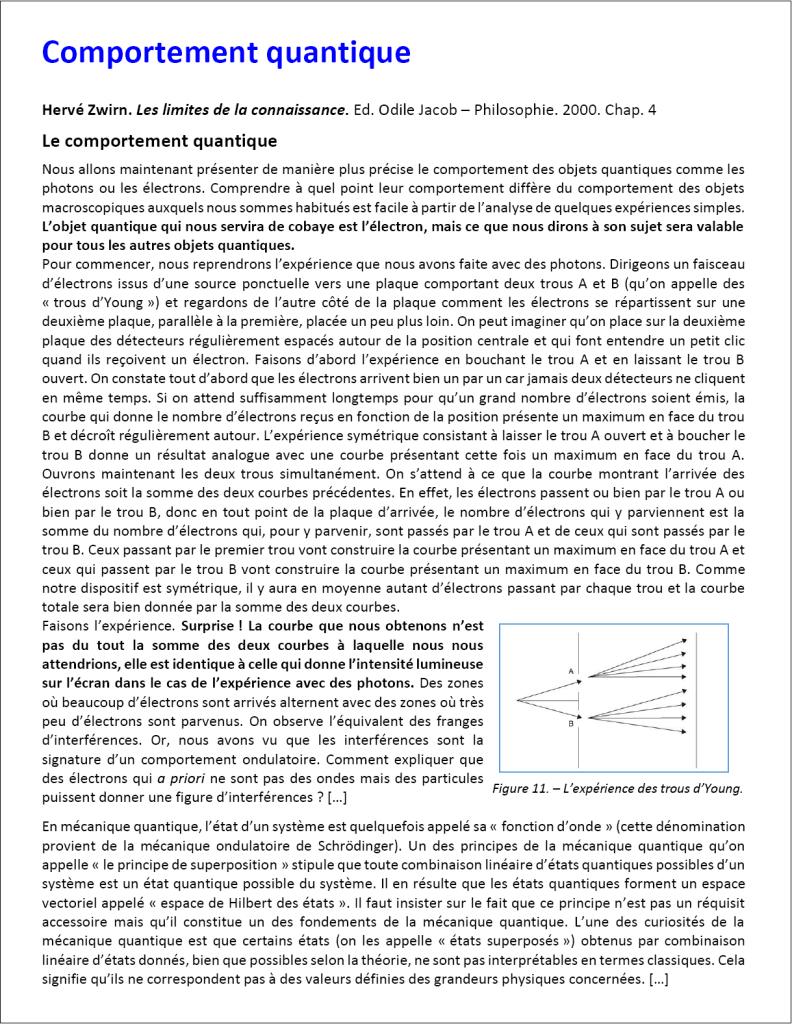 Ces prélèvements concernent plus particulièrement la mécanique quantique et peuvent donner lieu à un travail d’extraction partagé (individuel puis en petit groupe) des exemples significatifs et des concepts décisifs.