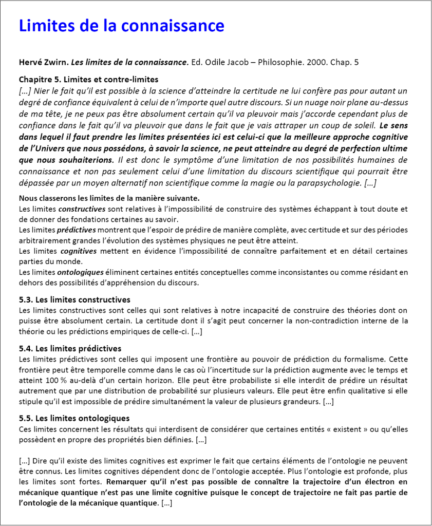Une petite collection de prélèvements dans l’œuvre d’Hervé Zwirn : Les limites de la connaissance.