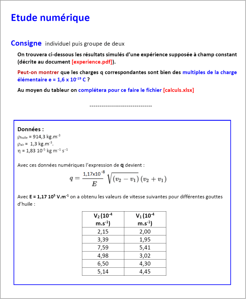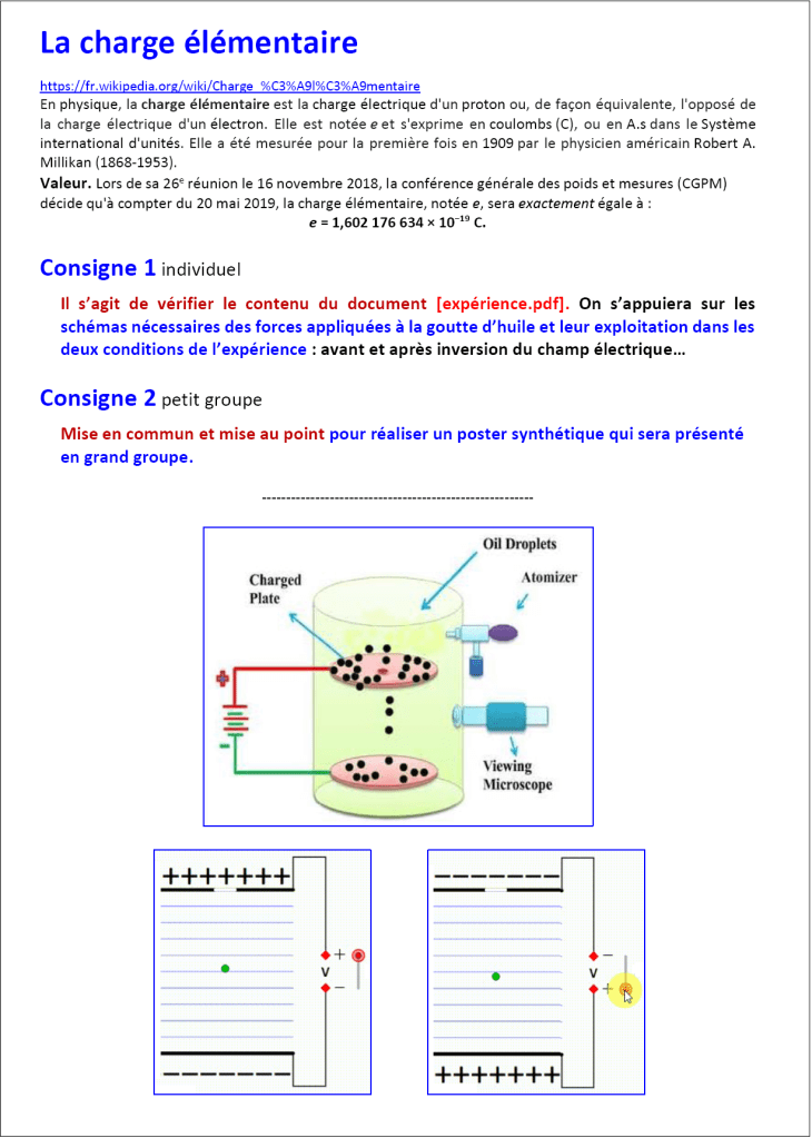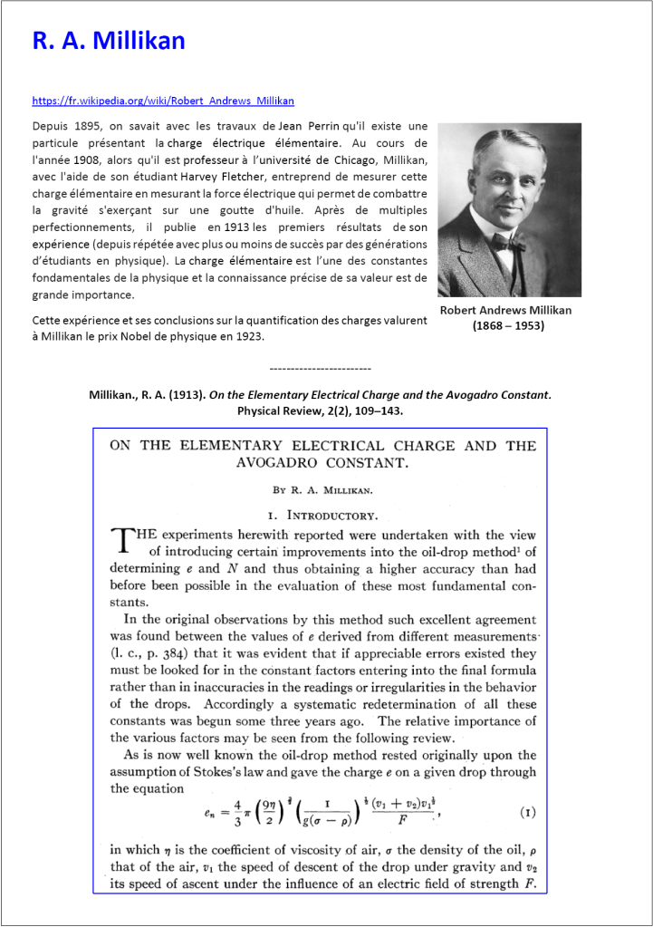 Tous les documents indiqués sont téléchargeables à l’adresse DOCS (dossier millikan)
