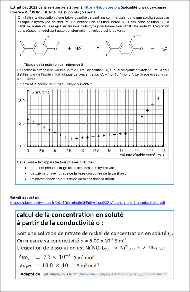 Tous les documents indiqués sont téléchargeables à l’adresse DOCS (dossier conductimetrie)