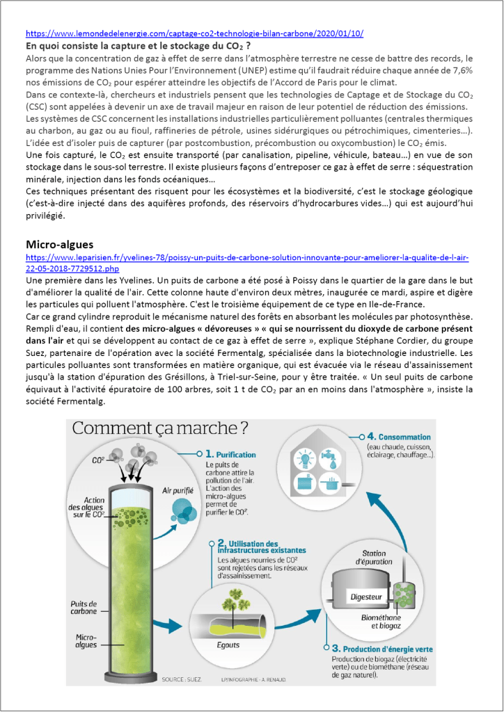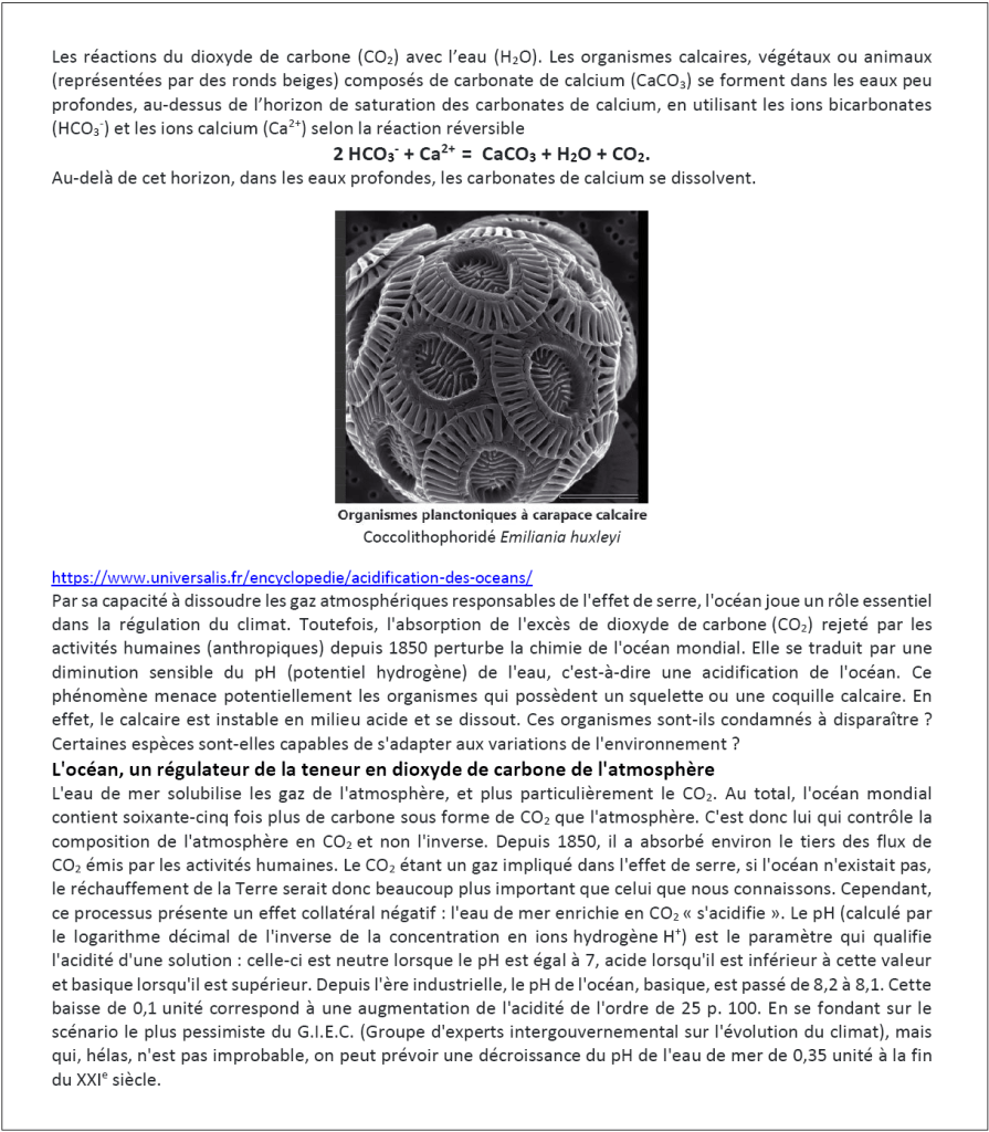Tous les documents indiqués sont téléchargeables à l’adresse DOCS (dossier dioxyde de carbone)