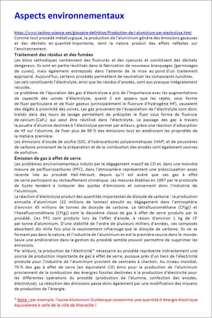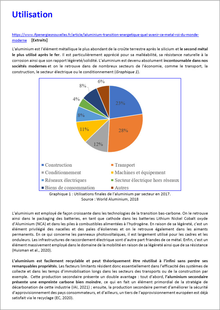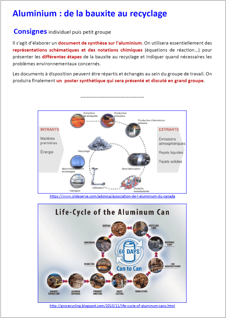 L’aluminium : de la bauxite au recyclage. Collection documentaire pour une synthèse.