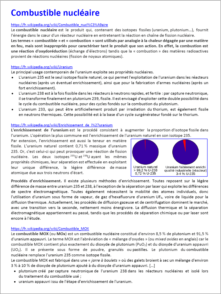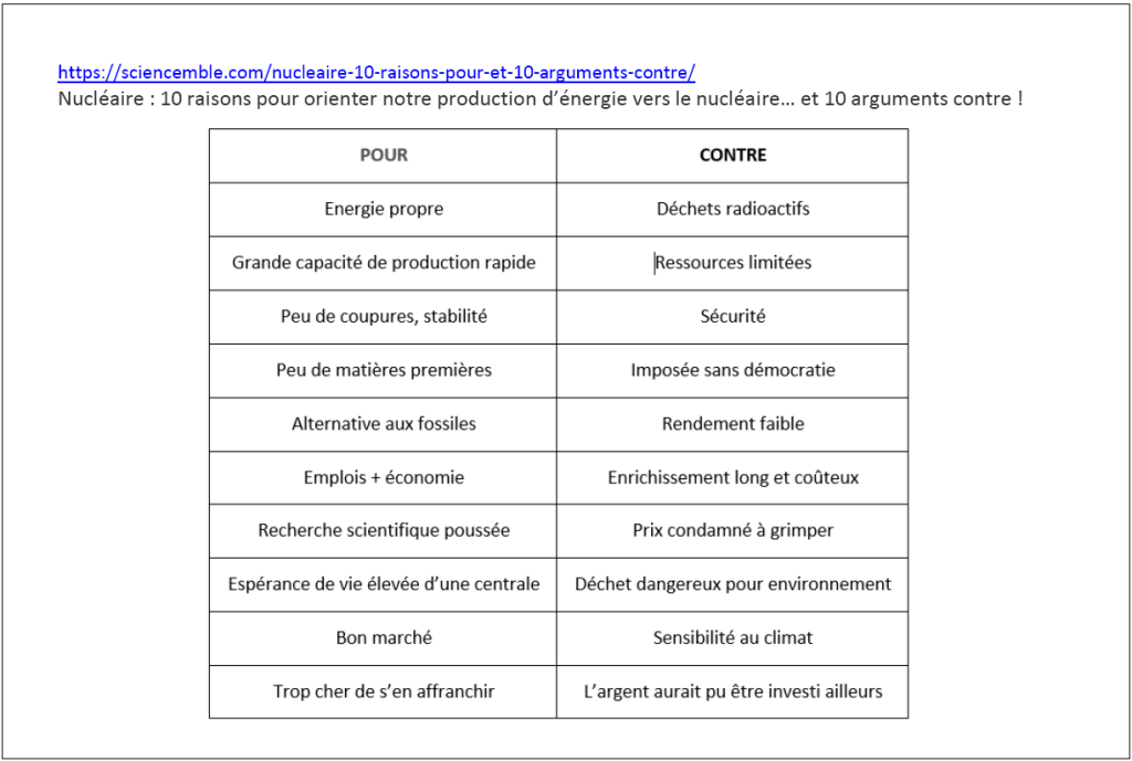 Il s’agit ici d’une collection documentaire pouvant donner lieu à un travail d’exploitation et synthèse de façon à alimenter le débat « pour-contre le nucléaire »…