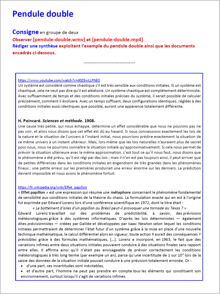 Tous les documents nécessaires sont téléchargeables à l’adresse DOCS (dossier complexite).