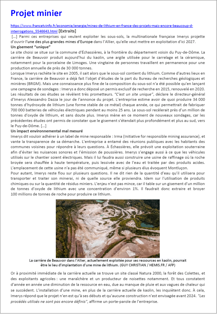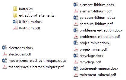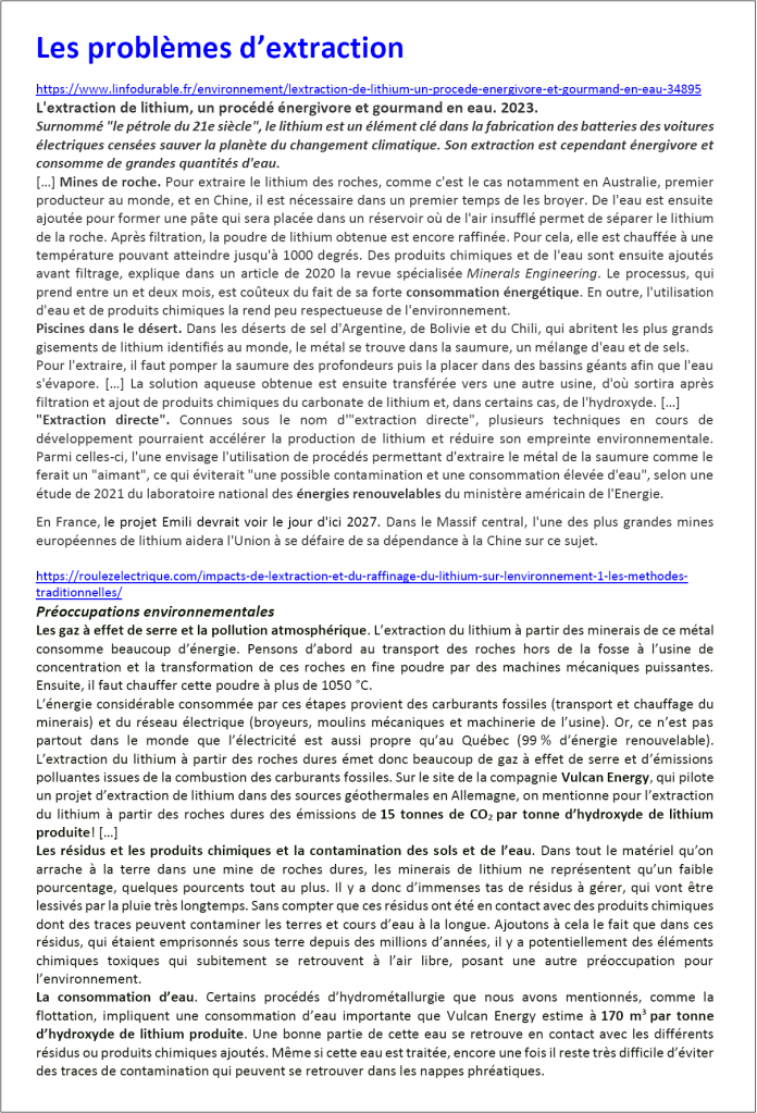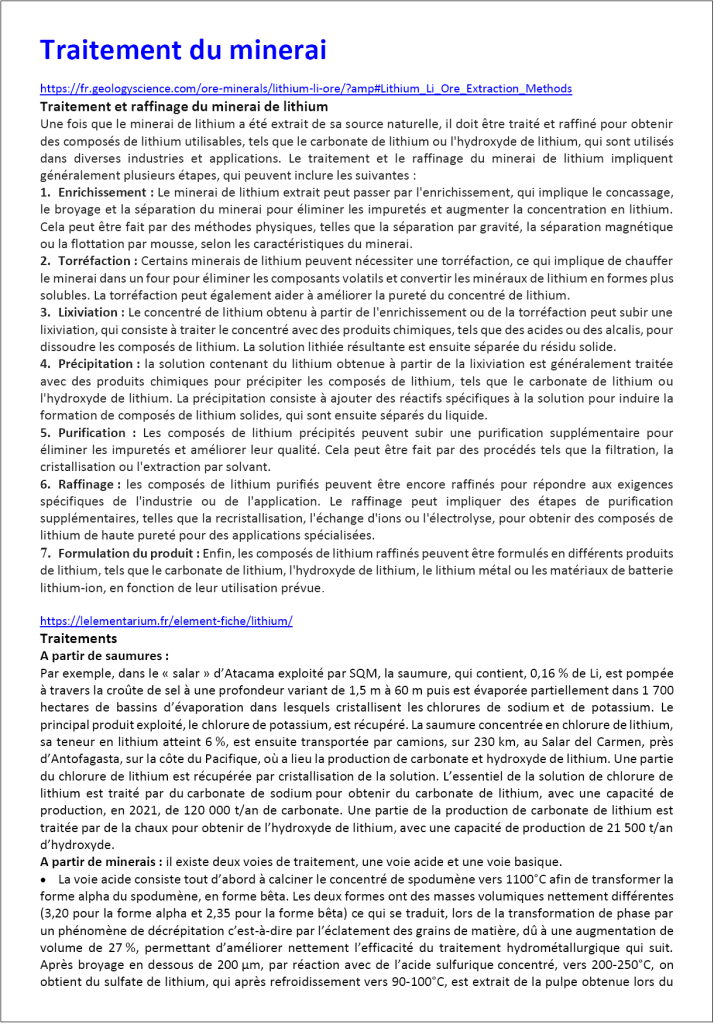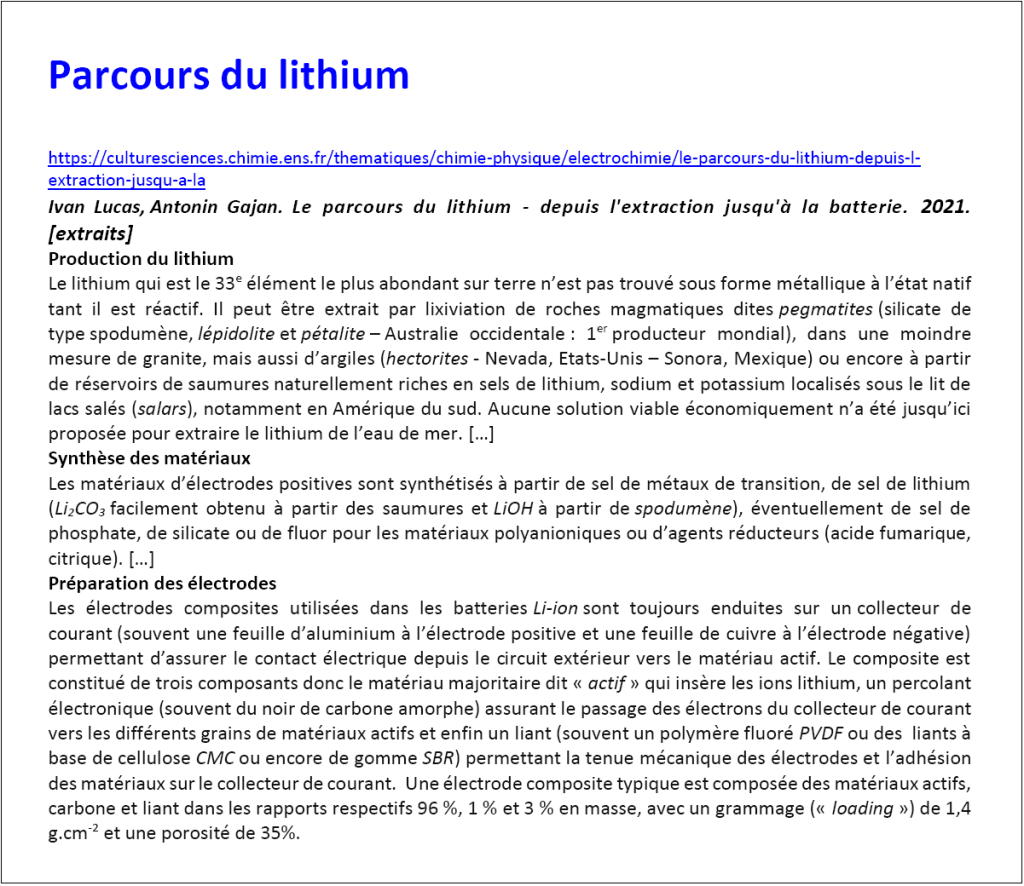 Tous les documents indiqués sont téléchargeables à l’adresse DOCS (dossier lithium-traitement).