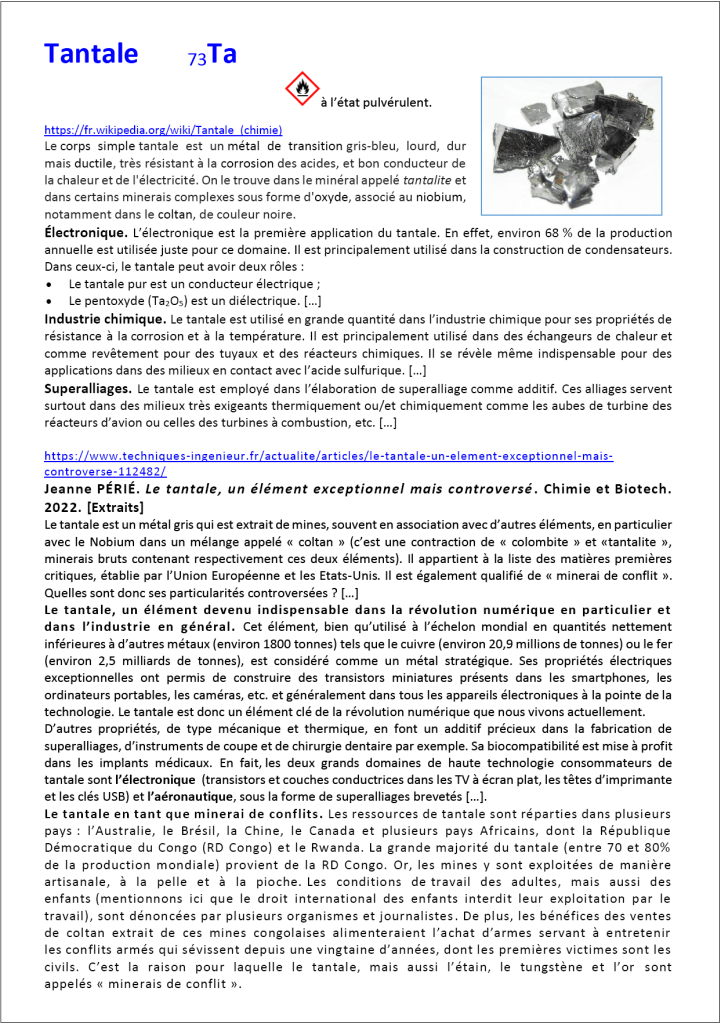 Tous les documents indiqués sont téléchargeables à l’adresse DOCS (dossier coltan).