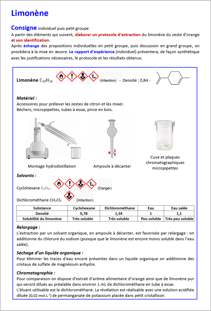 On trouvera également une proposition d’élaboration de protocole d’extraction et caractérisation du limonène.