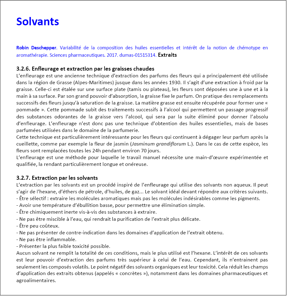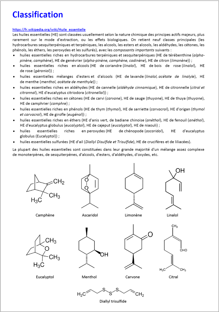 Tous les documents indiqués sont téléchargeables à l’adresse DOCS (dossier huiles-essentielles).